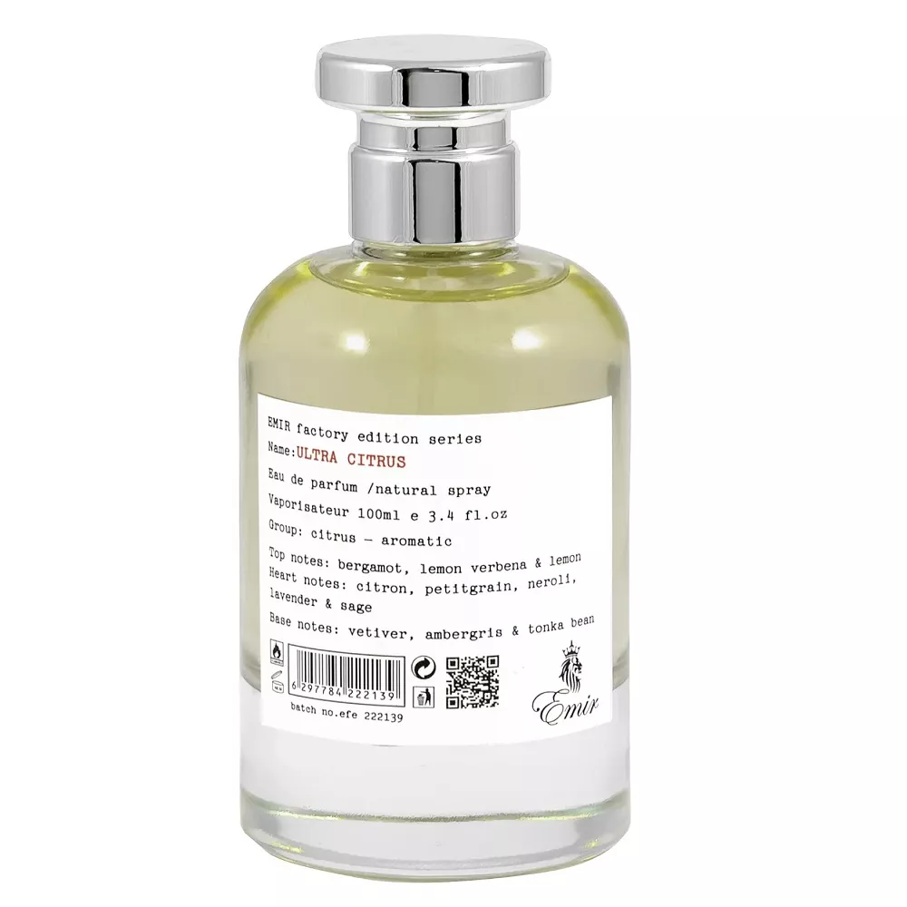 Emir Ultra Citrus Factory Edition to cytrusowo-aromatyczna woda perfumowana dla mężczyzn. Zapach ten jest wyrazisty, czysty i świeży, co czyni go idealnym wyborem na każdą okazję. Jego unikalna kompozycja sprawia, że doskonale poprawia nastrój.