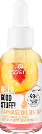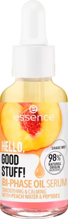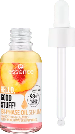 Dwufazowe serum Essence Hello, Good Stuff! to innowacyjne rozwiązanie, które nie tylko pobudza zmysły dzięki świeżemu, brzoskwiniowemu zapachowi, ale także zapewnia doskonałą pielęgnację skóry. Po delikatnym wstrząśnięciu, aby wymieszać obie fazy, serum oferuje wyjątkowe nawilżenie oraz niezrównaną gładkość skóry. Co więcej, 98% składników jest pochodzenia naturalnego, co czyni ten produkt przyjaznym zarówno dla Ciebie, jak i dla środowiska.