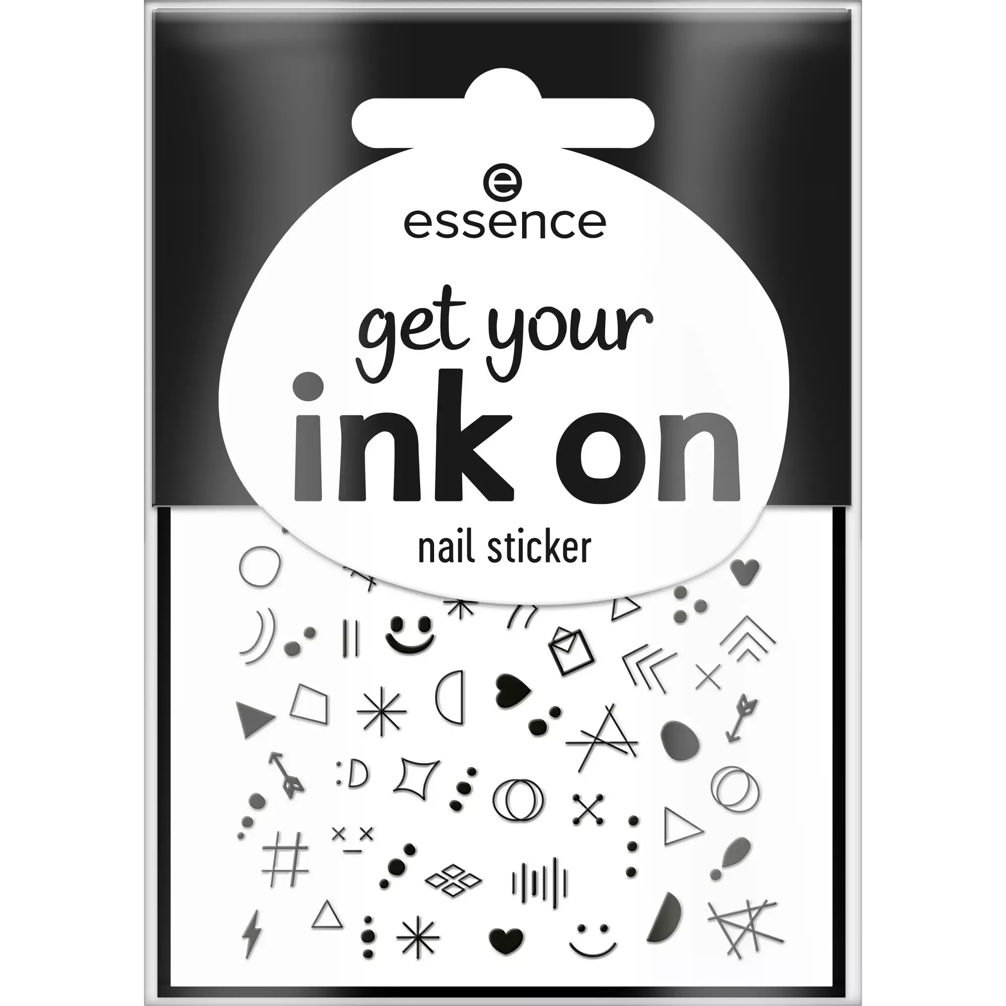 Nadaj swoim paznokciom wytatuowany efekt dzięki naklejkom Essence get your ink on nail. Te czarne monochromatyczne naklejki oferują różnorodność motywów, w tym zabawne rysunki, geometryczne kształty, ostre strzałki i uniwersalne kropki. Idealne do stworzenia unikalnego manicure w kilka chwil!
