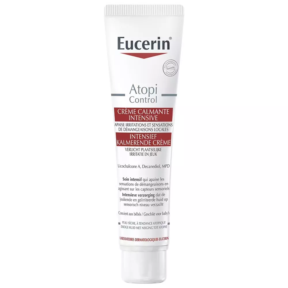Eucerin AtopiControl łagodzący krem do skóry atopowej 40ml to specjalistyczny krem przeznaczony do codziennej pielęgnacji skóry suchej, swędzącej i atopowej. Dzięki innowacyjnej formule opartej na kompleksie składników aktywnych, natychmiast łagodzi podrażnienia, zaczerwienienia oraz świąd. Krem wspiera odbudowę naturalnej bariery ochronnej skóry, sprawiając, że staje się ona bardziej miękka, elastyczna i mniej podatna na przesuszenia. Produkt jest odpowiedni dla dorosłych, dzieci oraz niemowląt powyżej trzeciego miesiąca życia.