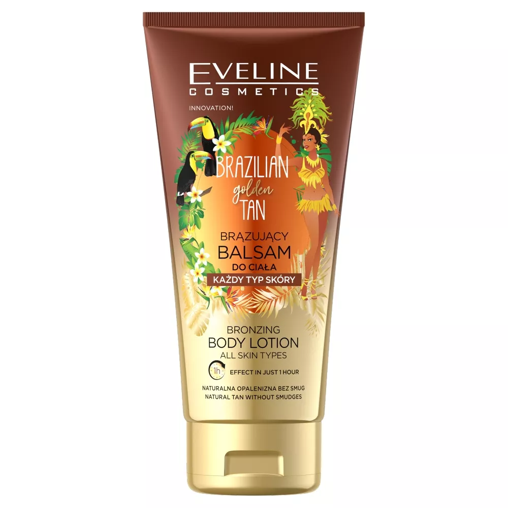 Brazilian Golden Tan brązujący balsam do ciała to produkt, który w zaledwie godzinę zapewnia efekt pięknej, złocistej i równomiernie opalonej skóry. Dzięki lekkiej konsystencji, balsam bardzo łatwo się rozprowadza, nie pozostawiając smug ani plam. Innowacyjna formuła nawilża i wygładza skórę, zapewniając jej aksamitną miękkość. To idealny wybór dla osób pragnących szybko uzyskać naturalną, złocistą opaleniznę. Balsam działa natychmiast, nadając skórze naturalny, brazylijski odcień już po pierwszej aplikacji. Regularne stosowanie zapewnia długotrwałe nawilżenie, gładkość i zdrowy wygląd skóry, dzięki czemu zawsze wyglądasz jak po powrocie z wakacji.