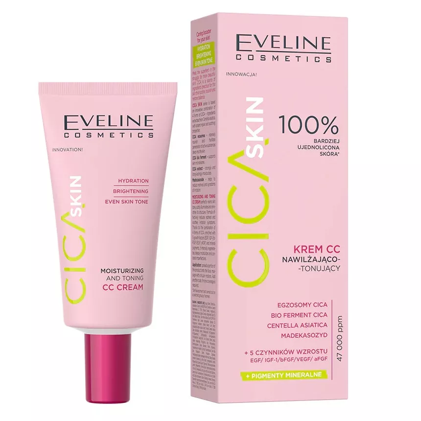 Poznaj superbohatera w walce o piękniejszą cerę! Eveline Cosmetics Cica Skin krem CC to źródło drogocennych dla skóry składników, które koją, odżywiają i przywracają równowagę. Ten nawilżająco-tonujący krem idealnie ujednolica koloryt skóry, subtelnie rozświetla i wygładza jej strukturę.