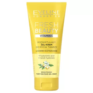 Eveline Cosmetics Fresh Beauty rozświetlający żel-krem do mycia twarzy z witaminą C to wegański produkt, który dzięki swojej aksamitnej konsystencji doskonale rozprowadza się na skórze, pozostawiając odświeżające uczucie czystości. Harmonijnie dobrane składniki, takie jak witamina C, hydrolat z kwiatu pomarańczy, kwas hialuronowy i puder ryżowy, zapewniają dogłębne oczyszczenie, regenerację oraz nawilżenie skóry. Witamina C widocznie ujednolica koloryt i dodaje cerze blasku, podczas gdy hydrolat z kwiatu pomarańczy silnie regeneruje i nawadnia skórę. Kwas hialuronowy chroni naskórek i zapewnia jego odżywienie, a puder ryżowy usuwa zanieczyszczenia, dostarczając jednocześnie potrzebnych minerałów. Świeży zapach żelu sprawia, że jego używanie staje się wyjątkową przyjemnością!