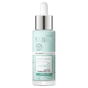 Serum Shot to innowacyjna kuracja wzmacniająca, będąca esencją nowoczesnej dermokosmetyki. Zawiera 2% kwas laktobionowy, który intensywnie regeneruje, koi i wzmacnia skórę, czyniąc ją bardziej odporną na zewnętrzne czynniki. Silidine® przywraca skórze równowagę, łagodzi podrażnienia oraz redukuje zaczerwienienia, zapewniając jednolity koloryt. Kwas traneksamowy zmniejsza objawy rumienia, wyciszając wszelkie niedoskonałości. Dzięki lekkiej, szybko wchłaniającej się formule, aplikacja jest niezwykle przyjemna i efektywna. Serum dedykowane jest dla cery wymagającej i wrażliwej: idealne jako kuracja okresowa lub profilaktyka dla skóry naczynkowej i wrażliwej. 98% osób stosujących serum potwierdza, że zmniejsza ono widoczność naczyń krwionośnych i wyrównuje koloryt, przywracając skórze jaśniejszy, wypoczęty wygląd.*
