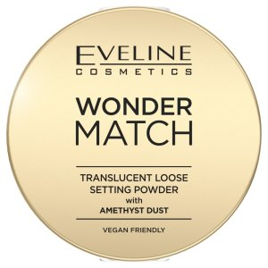 Niezwykle lekka receptura pudru Eveline Cosmetics Wonder Match zadba o delikatne piękno i naturalny wygląd skóry. Dopracowana transparentna formuła sprawdzi się jako kosmetyk do każdego odcienia cery. Puder utrwali makijaż i wykreuje efekt naturalnego wykończenia! Ametystowy pył ożywi szarą skórę, rozświetli ją i zmniejszy widoczność niedoskonałości. Formuła zatuszuje również delikatne linie i zmarszczki. Praktyczne opakowanie nie dopuści do niepotrzebnego wysypywania się proszku, a gąbeczka dołączona do pudru pozwoli efektywnie nałożyć kosmetyk na skórę.