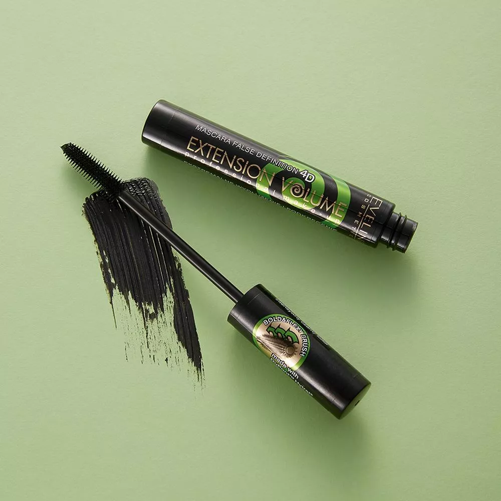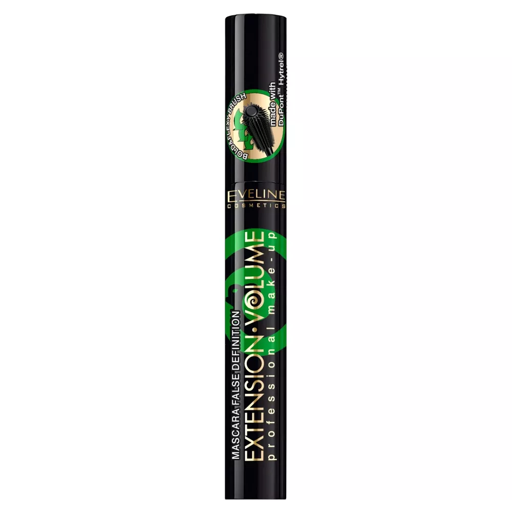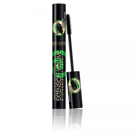 Tusz do rzęs Eveline Extension Volume 4D FALSE DEFINITION to kosmetyk, który ekstremalnie wydłuża i podkręca rzęsy. Wyjątkowa elastyczna szczoteczka, opatentowana przez Eveline Cosmetics, została wykonana z nowoczesnych materiałów w technologii DuPont Hytrel®. Umożliwia to precyzyjne rozdzielenie rzęs i pokrycie wszystkich włosków, nawet w kącikach oka. Formuła tuszu zawiera unikalną kompozycję składników aktywnych, które wzmacniają i odbudowują rzęsy od nasady aż po same końce, zapobiegając ich wypadaniu podczas demakijażu. Rzęsy są wyraźnie odżywione i nawilżone.