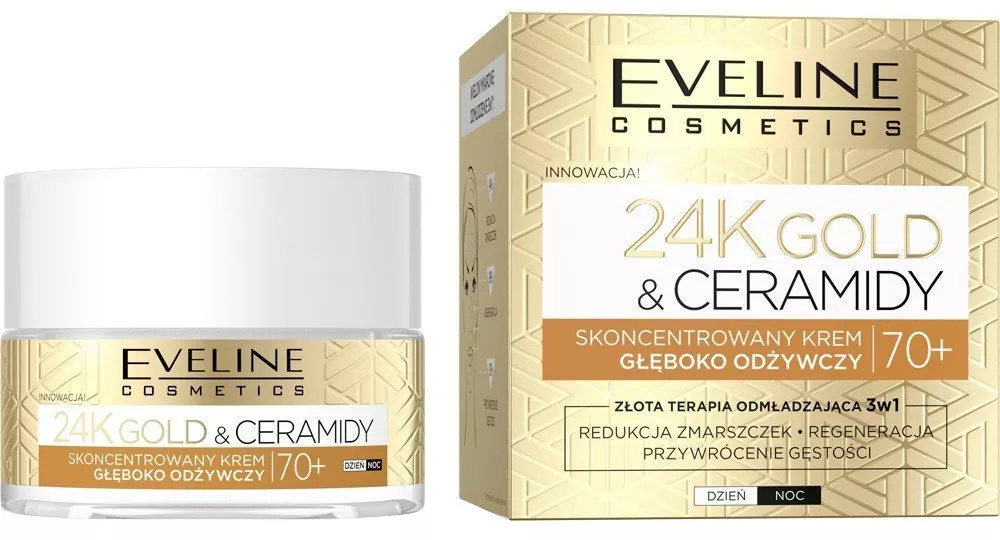 Eveline Gold & Ceramidy 70+, głęboko odżywczy krem do twarzy, 50 ml
