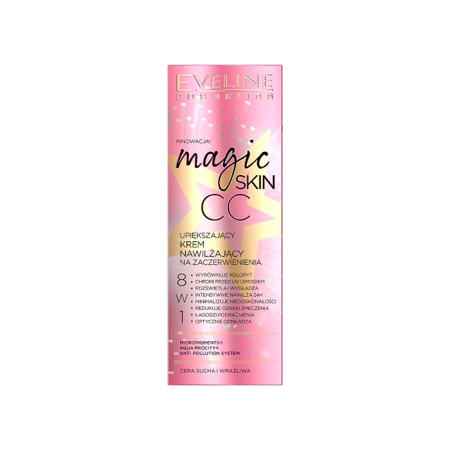 Eveline Magic Skin CC, upiększający krem nawilżający na zaczerwienienia, 50ml