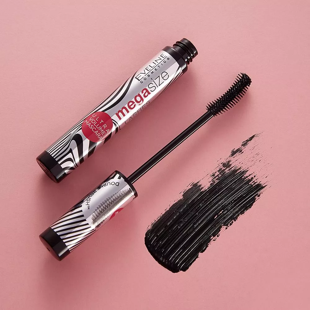 Rewolucyjna maskara Mega Size Lashes Eveline zapewnia natychmiastowy efekt maksymalnie wydłużonych i podkręconych rzęs! Innowacyjna formuła tuszu Beauty & Care sprawia, że rzęsy stają się długie, gęste i wyraziste. Pigmenty mineralne, wosk ryżowy, naturalny wosk carnauba oraz kompleks witamin (A, E i F) doskonale wzmacniają i odżywiają rzęsy. Zapobiega wypadaniu i łamaniu rzęs, pobudzając je do wzrostu. Dzięki zawartości D-panthenolu tusz jest wyjątkowo delikatny dla oczu i nie powoduje podrażnień.
