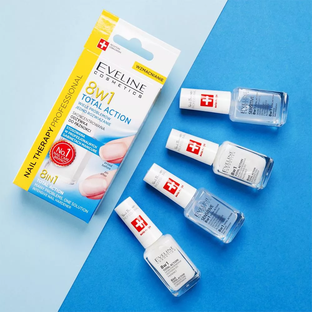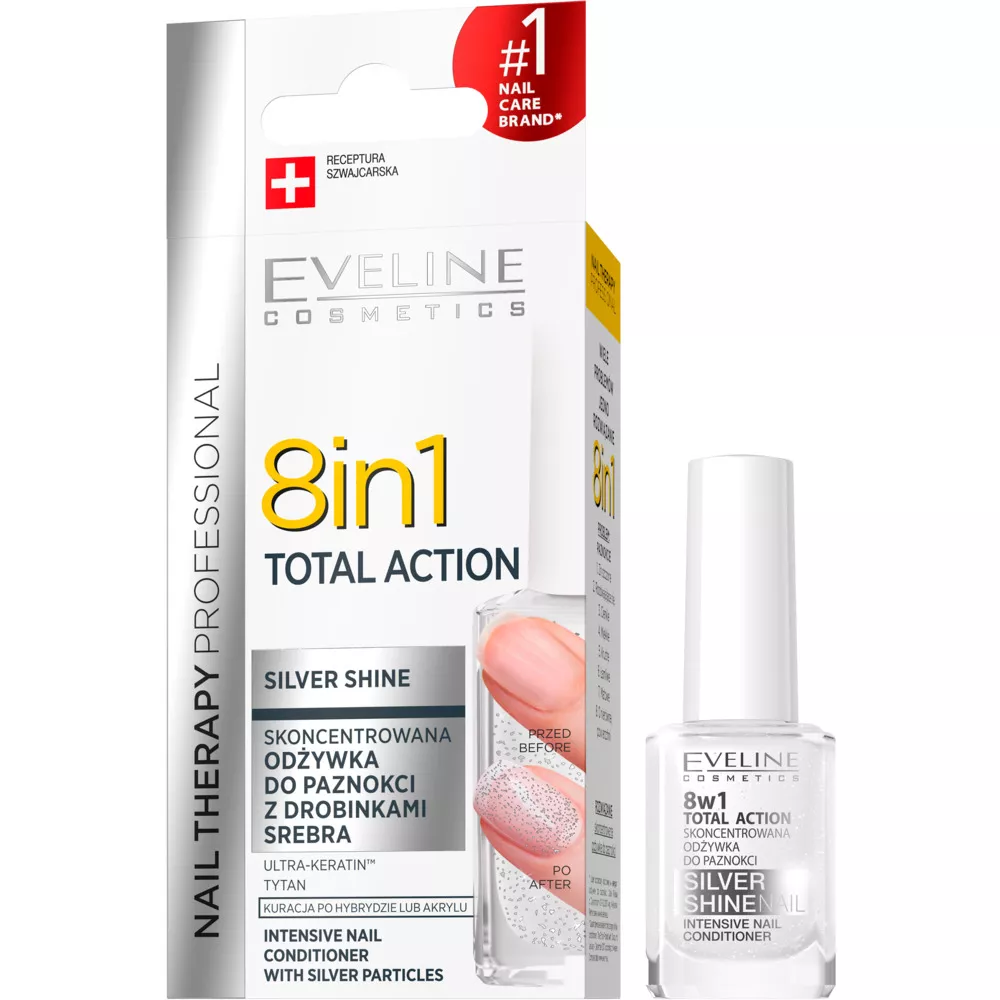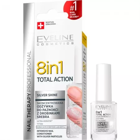 Luksusowa srebrna odżywka do paznokci Eveline Nail Therapy Professional to produkt, który zapewnia kompleksową pielęgnację paznokci, oferując aż 8 korzyści w jednym opakowaniu. Dzięki aktywnemu kompleksowi Strong Nail, odżywka wnika w strukturę płytki paznokcia, odbudowuje i regeneruje ją, pobudzając jej wzrost. Uszczelnia mikroubytki, utwardza płytkę i zapewnia optymalny poziom nawilżenia, chroniąc przed pękaniem, łamaniem i rozdwajaniem się paznokci.