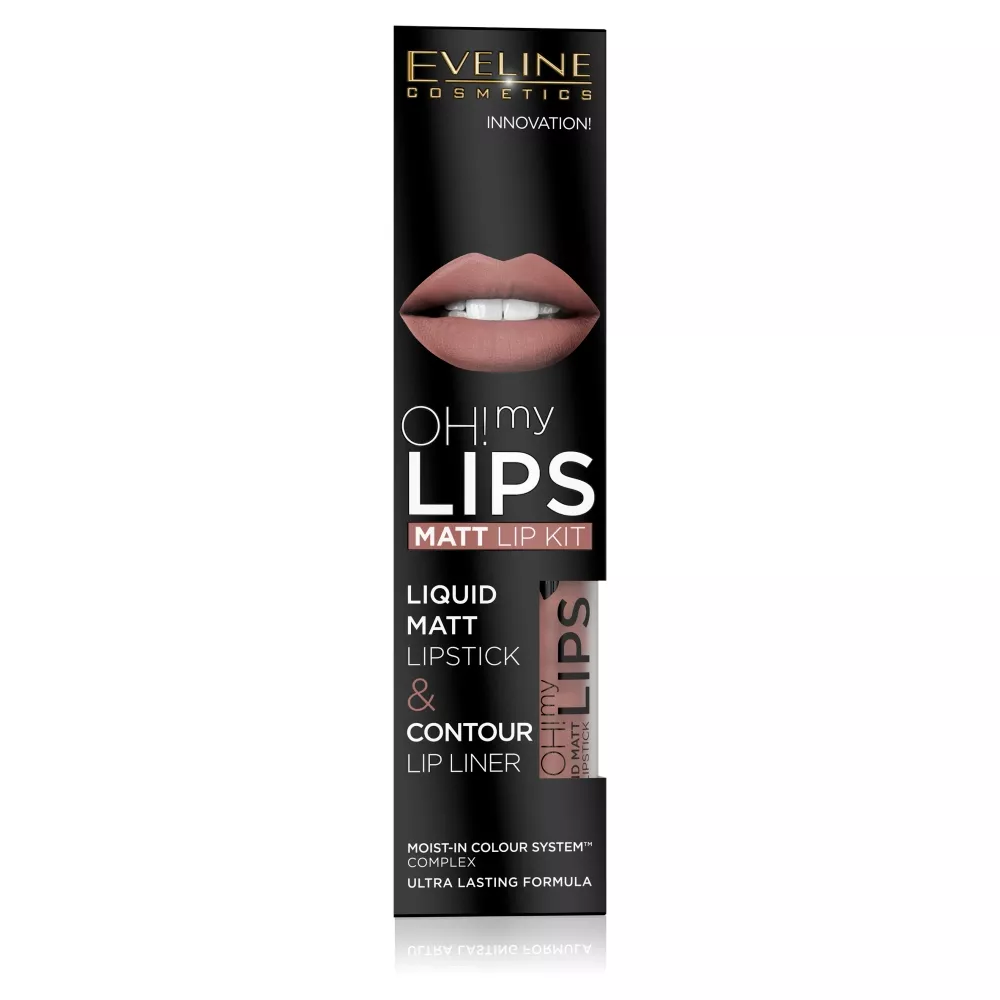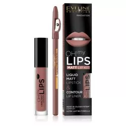 Eveline Oh! My Lips, zestaw: matowa pomadka w płynie i konturówka, 02 milky chocolate,