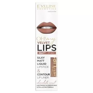 Eveline Oh! My Velvet Lips, zestaw: matowa pomadka w płynie i konturówka, 14 choco truffle,