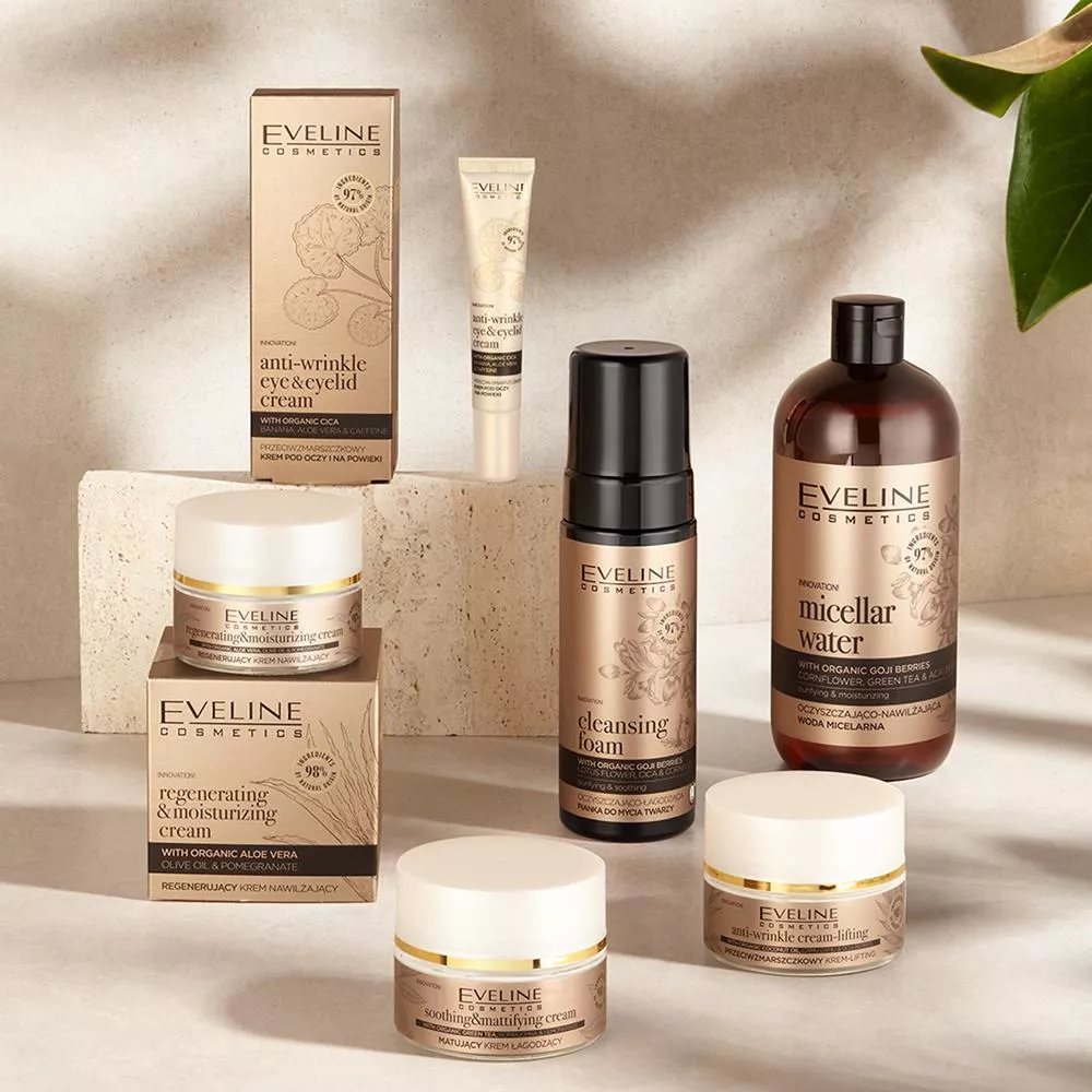 Oczyszczająco-łagodząca pianka do mycia twarzy Eveline Organic Gold to produkt o innowacyjnej bioformule, która w 96% oparta jest na składnikach pochodzenia naturalnego. Delikatnie, lecz skutecznie usuwa zanieczyszczenia, nadmiar sebum i resztki makijażu, pozostawiając skórę czystą, gładką i przyjemnie nawilżoną. Wegańska formuła bazuje na starannie wyselekcjonowanych ekstraktach z zaufanych i zrównoważonych upraw, zgodnie z trendem Clean Beauty.
