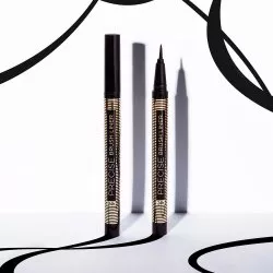 Przejedź superprecyzyjną końcówką linera wzdłuż linii rzęs od wewnętrznego kącika oka do zewnątrz. Przeciągnij kreskę dalej i lekko w górę, aby optycznie powiększyć i otworzyć oczy. Przed użyciem kilkukrotnie delikatnie wstrząśnij eyelinerem. Po użyciu dokładnie zamknij pisak, aby zapobiec wysychaniu.