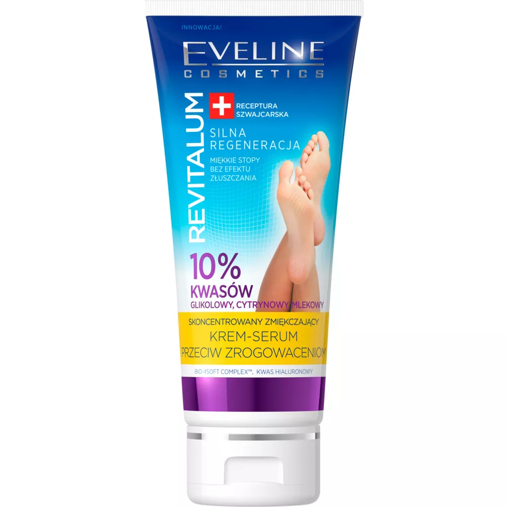 Skoncentrowany zmiękczający krem-serum do stóp przeciw zrogowaceniom to innowacyjny produkt, który dzięki swojej profesjonalnej formule z 10% zawartością kompleksu kwasów glikolowego, cytrynowego i mlekowego, skutecznie rozpuszcza i usuwa zewnętrzną, stwardniałą warstwę rogową naskórka, bez potrzeby mechanicznego złuszczania. Już po pierwszej aplikacji skóra staje się miękka i przyjemna w dotyku.