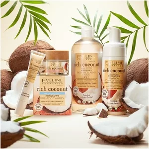 Odkryj ultra-bogaty kokosowy krem pod oczy Eveline Rich Coconut, stworzony z myślą o pielęgnacji delikatnej skóry wokół oczu. Ten wegański produkt oparty jest w 97% na składnikach pochodzenia naturalnego i zawiera organiczny olejek kokosowy, który intensywnie nawilża, odżywia i rewitalizuje skórę, przywracając jej naturalny blask. Krem skutecznie niweluje objawy zmęczenia, usuwa zmarszczki oraz drobne linie.