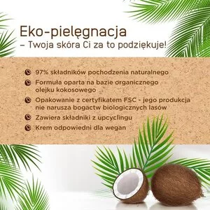 - Organicznym olejek kokosowy - głęboko nawilża i przywraca skórze miękkość oraz sprężystość.