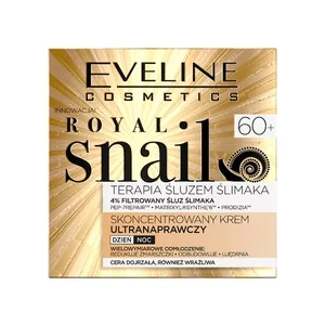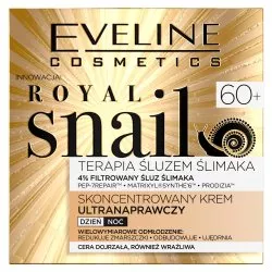 Skoncentrowany krem ultranaprawczy Eveline Royal Snail to doskonały wybór dla kompleksowej pielęgnacji skóry po 60. roku życia. Jego innowacyjna formuła znacząco zwiększa zdolności regeneracyjne skóry, działając jak globalny aktywator odmłodzenia. Formuła zawiera 4% filtrowanego śluzu ślimaka, który działa jak skoncentrowana ultranaprawcza ampułka regenerująca. Dzięki bogactwu składników aktywnych, takich jak alantoina, kwas glikolowy, kolagen, elastyna oraz mukopolisacharydy, krem przyspiesza syntezę kolagenu i elastyny, co czyni skórę doskonale napiętą i elastyczną.