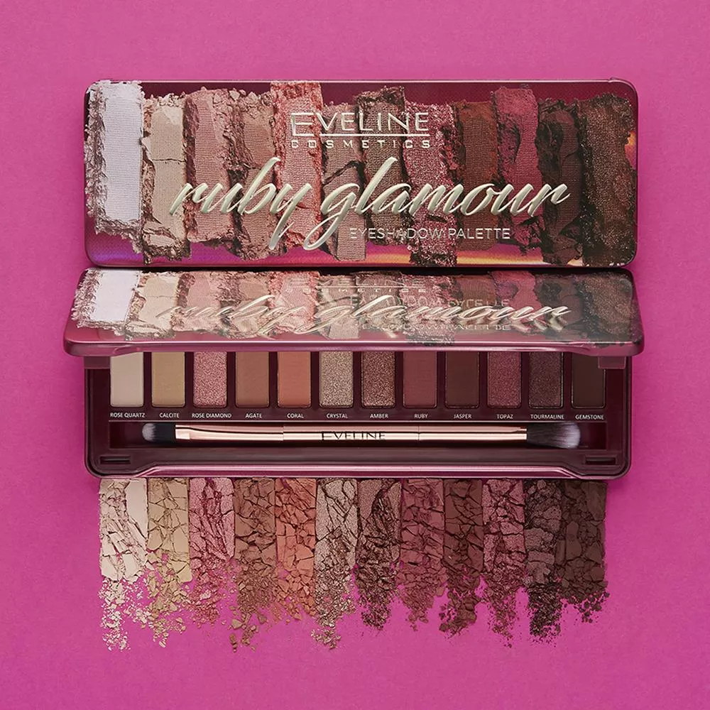 Odkryj Eveline Ruby Glamour, paletę cieni do powiek, która zachwyci Cię bogactwem kolorów inspirowanych szlachetnymi kamieniami. Ta paleta zawiera 12 mocno napigmentowanych cieni, które pozwalają na stworzenie dowolnej stylizacji dzięki doskonale dobranym odcieniom. Eleganckie opakowanie z lusterkiem oraz dołączony dwustronny, profesjonalny pędzelek sprawiają, że aplikacja jest niezwykle prosta i precyzyjna.