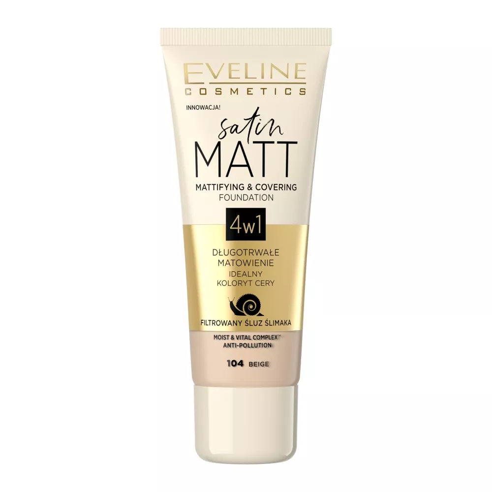 Matująco-kryjący podkład Eveline Satin Matt zapewnia satynowy efekt makijażu, skutecznie matując i wyrównując koloryt cery. Jego aksamitna konsystencja umożliwia stopniowanie krycia, jednocześnie zapewniając komfort użytkowania. Podkład wyrównuje powierzchnię skóry, minimalizując widoczność porów i ukrywając niedoskonałości. Formuła wzbogacona o filtrowany śluz ślimaka idealnie stapia się z cerą, ujędrniając ją i zapewniając doskonałe krycie bez efektu maski. Innowacyjny kompleks MOIST&VITAL COMPLEX™ nawilża skórę, eliminując oznaki zmęczenia.