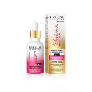 Unicorn Magic Drops to innowacyjna, płynna baza-serum, która przedłuża trwałość makijażu i aktywnie pielęgnuje cerę. Formuła z kwasem hialuronowym, ekstraktami goi i acai skutecznie nawilża i ujędrnia skórę. Dzięki zawartości kolagenu roślinnego i wyciągu z agawy poprawia jej napięcie i gęstość. Składnik aktywny niacynamide (witamina B3) zapobiega szkodliwemu działaniu wolnych rodników, odmładza i działa przeciwzmarszczkowo. Kosmetyk widocznie niweluje zaczerwienienia i chroni naturalny mikrobiom skóry. Produkt jest przyjazny dla wegan.