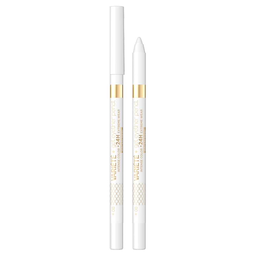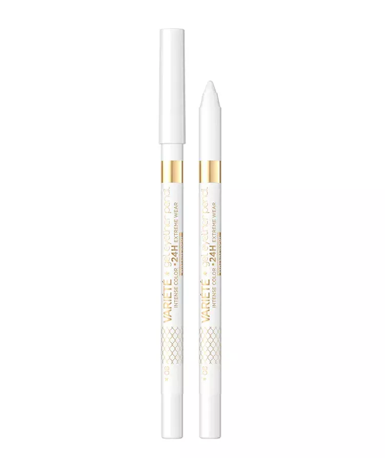 Cudowna żelowa kredka do oczu Eveline Variete w odcieniu nr 08 White idealnie sprawdzi się zarówno do subtelnego zaznaczenia linii rzęs, jak i jako eyeliner lub baza pod cień. Dzięki miękkiej formule i poręcznemu kształtowi, aplikacja kredki jest niezwykle łatwa. Jej wysoka trwałość oraz wodoodporność gwarantują charakteryzację na cały dzień, a także doskonale sprawdza się jako makijaż na linię wodną. Intensywna pigmentacja kredki to pewność wyjątkowego make-upu, a sześć różnorodnych kolorów pozwala stworzyć niespodziewane charakteryzacje. Wybierz spośród czerni, bieli, brązu, niebieskiego, turkusu, beżu, odcieni różu lub koloru szampana, aby dopasować swój makijaż do nastroju.