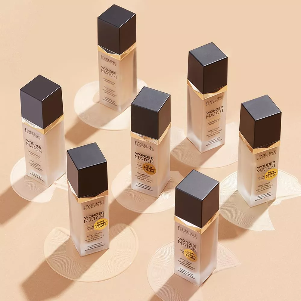 Luksusowy podkład Eveline Wonder Match łączy innowacyjność makijażu z pełną pielęgnacją cery. Jego przyjemna i dopasowująca się konsystencja skutecznie tuszuje niedoskonałości skóry i oznaki zmęczenia, nadając cerze świeży i wypoczęty wygląd. Produkt zapewnia trwałość do 24 godzin, co pozwala czuć się pewnie przez cały dzień i noc!