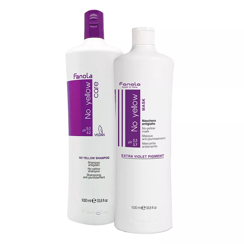 Poznaj bestsellerowy szampon Fanola No Yellow, który pokochały wszystkie blondynki. Kosmetyk ten dzięki swojej intensywnej formule skutecznie usuwa żółte odcienie zarówno na włosach farbowanych, jak i naturalnych. Dzięki temu zapewnia trwały chłodny odcień, który utrzymuje się na włosach przez długi czas. Swoje działanie opiera na winnym ekstrakcie, który działa antyoksydacyjnie oraz zabezpiecza włosy przed szkodliwym działaniem promieni słonecznych. Ponadto zawiera również odżywcze proteiny jedwabiu. Co ważne, efekt widać już po pierwszym zastosowaniu! Teraz szampon możesz kupić z maską tonującą i to w powiększonej pojemności - zestaw XL wystarczy na dłużej. To się opłaca!