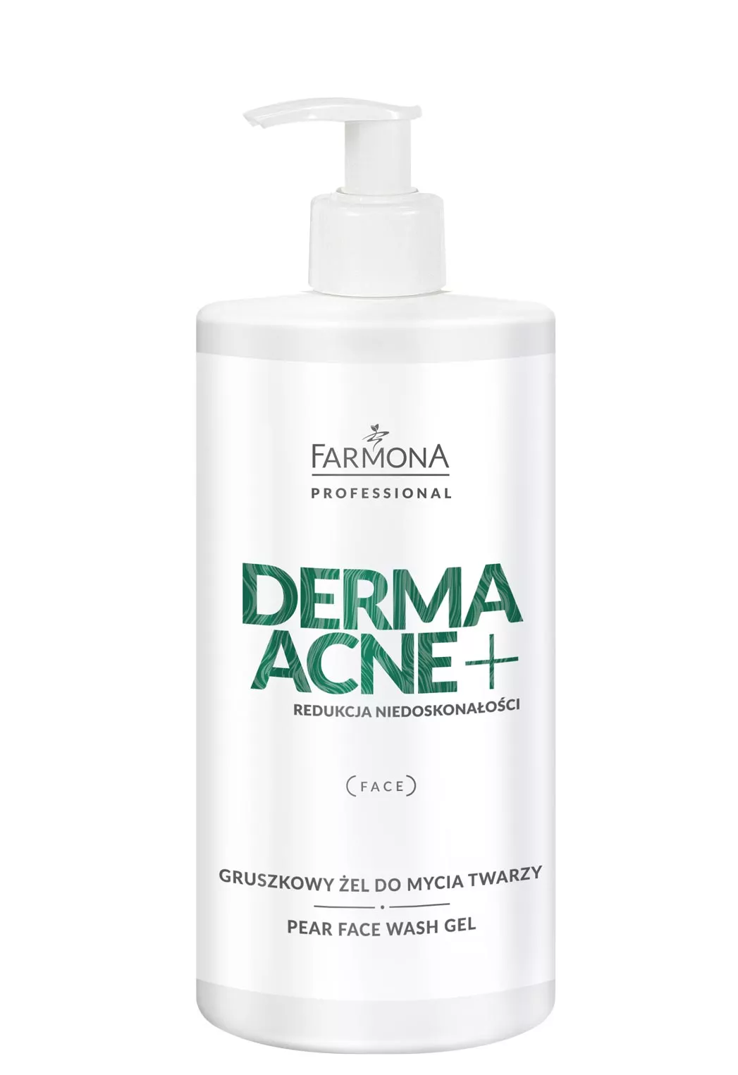 Farmona Professional Derma Acne+ Gruszkowy żel do mycia twarzy 500 ml to specjalistyczny kosmetyk przeznaczony do codziennej pielęgnacji cery tłustej, mieszanej oraz zanieczyszczonej, wykazującej tendencję do nadmiernego błyszczenia. Unikalna formuła oparta na ekstrakcie z gruszki, kwasach owocowych oraz innowacyjnym składniku PROTEOL™APL skutecznie oczyszcza skórę, redukuje niedoskonałości i przywraca cerze świeżość. Dzięki obecności ekstraktu z kory wierzby oraz cynku PCA żel pomaga zmniejszyć wydzielanie sebum, łagodzi podrażnienia i zwęża pory, pozostawiając skórę wyraźnie gładszą i matową.