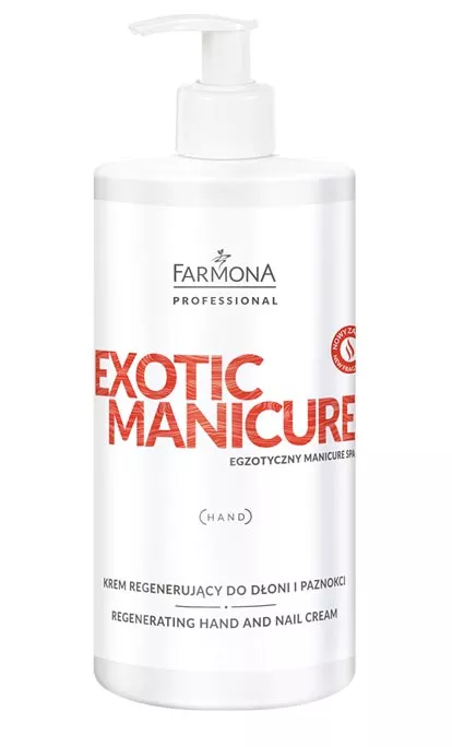 Farmona Professional Exotic Manicure to krem regenerujący do dłoni i paznokci o pojemności 500 ml, stworzony z myślą o intensywnej pielęgnacji suchej, odwodnionej skóry dłoni oraz kruchych, łamliwych paznokci. Dzięki bogatej formule z kompleksem olejów, ekstraktem z migdałów oraz witaminą E, krem zapewnia głębokie nawilżenie, odżywienie i ochronę, przywracając dłoniom gładkość, elastyczność oraz zdrowy wygląd.