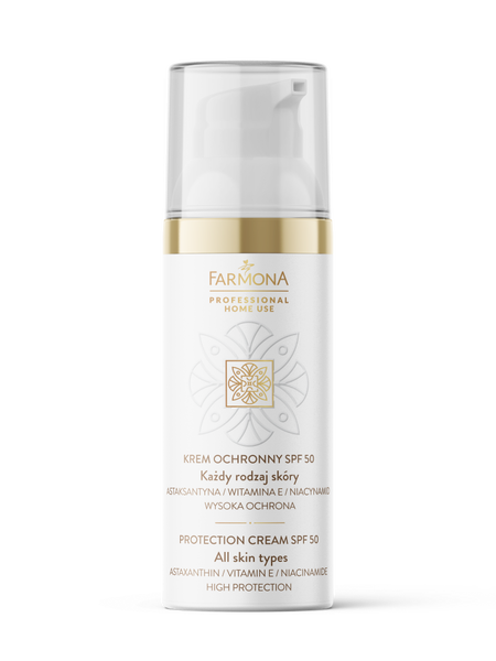 Farmona Professional Home Use krem ochronny SPF50 do twarzy to nowoczesny kosmetyk, który skutecznie chroni skórę przed szkodliwym promieniowaniem UV, jednocześnie pielęgnując i nawilżając cerę. Innowacyjna, ultralekka formuła nie pozostawia białych śladów i nie obciąża skóry, dzięki czemu doskonale sprawdzi się w codziennej pielęgnacji każdego typu skóry – również wrażliwej i skłonnej do podrażnień. Produkt został wzbogacony o starannie dobrane składniki aktywne, które łagodzą, ujędrniają, rozświetlają oraz wzmacniają naturalną barierę ochronną skóry.