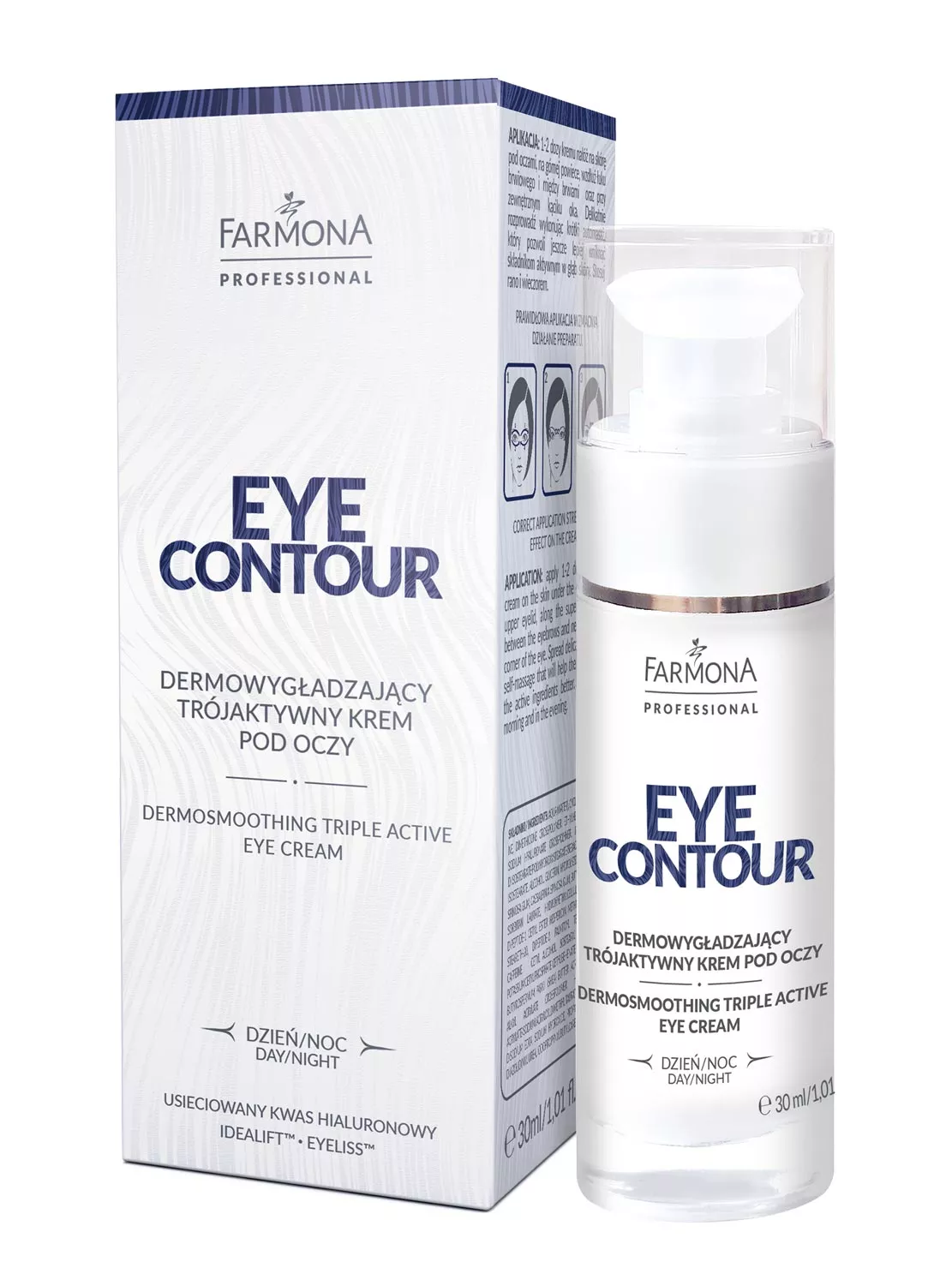 Farmona Professional New Eye Contour to dermowygładzający, trójaktywny krem pod oczy stworzony z myślą o redukcji zmarszczek mimicznych oraz skutecznym opóźnianiu oznak starzenia skóry wokół oczu. Zaawansowana formuła oparta na specjalnie wyselekcjonowanych składnikach aktywnych intensywnie wygładza, redukuje zmarszczki i przywraca spojrzeniu efekt wypoczęcia oraz promienności. Krem o pojemności 30 ml zapewnia kompleksową pielęgnację delikatnej skóry wokół oczu, dbając zarówno o jej jędrność, jak i nawilżenie.