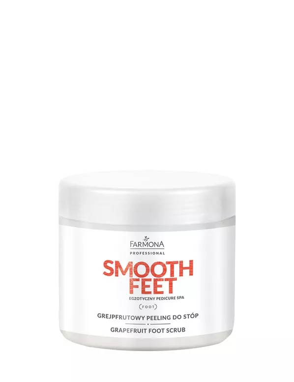 Farmona Professional Smooth Feet to profesjonalny grejpfrutowy peeling do stóp o pojemności 500 g, dedykowany do pielęgnacji suchej i odwodnionej skóry stóp oraz kolan. Dzięki połączeniu naturalnych składników, takich jak masło shea, witamina E, kryształki soli oraz grejpfrutowy olejek eteryczny, produkt skutecznie złuszcza martwy naskórek, intensywnie wygładza i odświeża skórę, przygotowując ją do dalszych zabiegów pielęgnacyjnych. Peeling polecany jest zarówno do użytku domowego, jak i w gabinetach kosmetycznych.