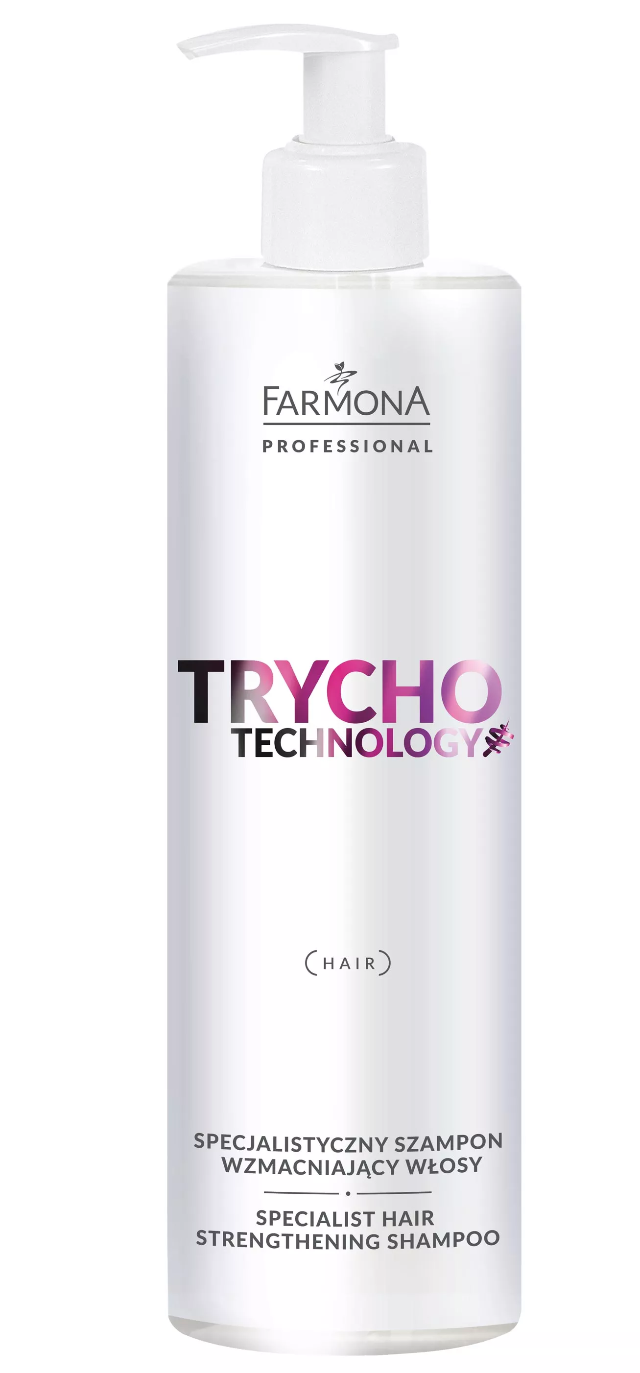 Farmona Professional Trycho Technology to specjalistyczny szampon wzmacniający włosy, opracowany z myślą o kompleksowej pielęgnacji skóry głowy i włosów. Przeznaczony jest do każdego rodzaju skóry głowy oraz włosów, jednak szczególnie polecany osobom z włosami osłabionymi, rzadkimi, cienkimi, wolno rosnącymi oraz z tendencją do wypadania. Innowacyjna formuła bazująca na składnikach aktywnych, takich jak trichogen, kofeina oraz ekstrakt ze skrzypu, skutecznie wzmacnia włosy, ogranicza ich wypadanie i stymuluje wzrost nowych pasm.