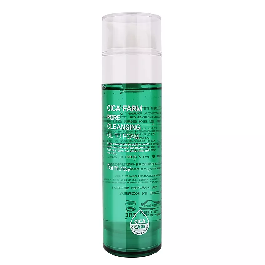 FarmStay Cica Farm Pore Cleansing Oil to Foam to innowacyjny olejek oczyszczający w piance, który łączy działanie olejku i pianki, zapewniając dogłębne oczyszczanie porów. Dzięki formule opartej na ekstrakcie z wąkrotki azjatyckiej (Centella Asiatica, CICA), produkt skutecznie koi skórę, łagodzi stany zapalne i przywraca równowagę wodno-lipidową naskórka.