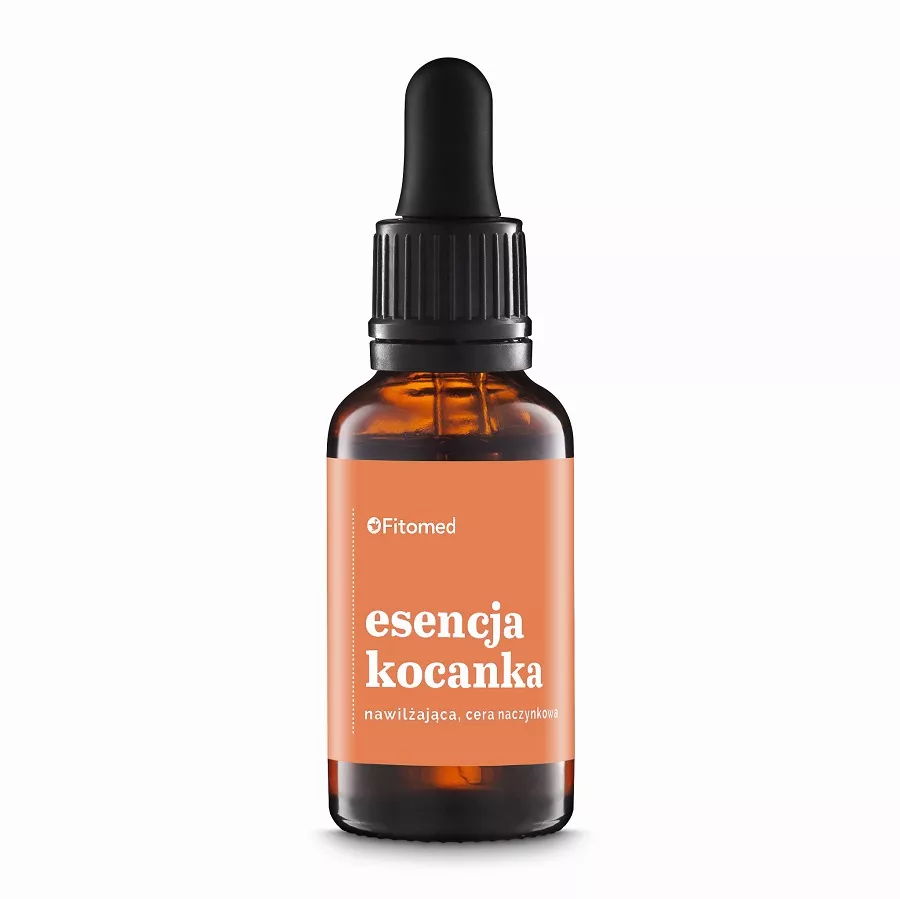 Fitomed Esencja nawilżająca do cery naczynkowej „Kocanka” to doskonały kosmetyk stworzony z myślą o potrzebach kobiet z cerą naczynkową. Dzięki starannie dobranym składnikom, esencja łagodzi zmiany naczynkowe, intensywnie nawilża skórę oraz nadaje jej uczucie świeżości. Zawiera hydrolat oczarowy, wyciąg z kasztanowca oraz rutynę, które wzmacniają naczynka włosowate, łagodzą rumień i zaczerwienienie skóry. Wyciąg z kocanki działa antyoksydacyjnie, przeciwzapalnie i rozjaśniająco, a kwas hialuronowy tworzy ochronny film na skórze, zapewniając jej odpowiednie nawilżenie.