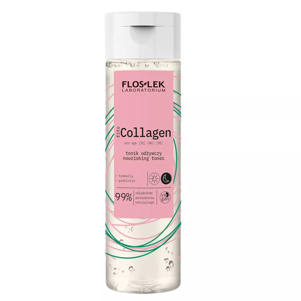 Floslek fitoCollagen tonik odżywczy 200ml to produkt, który zapewnia odczucie odżywienia, nawilżenia i odświeżenia skóry. Przywraca jej witalność oraz sprawia, że staje się miękka i aksamitna w dotyku. Tonik nie tylko tonizuje skórę, ale także przygotowuje ją do kolejnych etapów pielęgnacji.