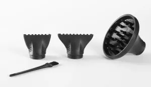 - Dwie dysze (65×12 mm oraz 60×16 mm) i dyfuzor w komplecie – szerokie możliwości stylizacji i precyzyjne modelowanie każdego rodzaju włosów.
