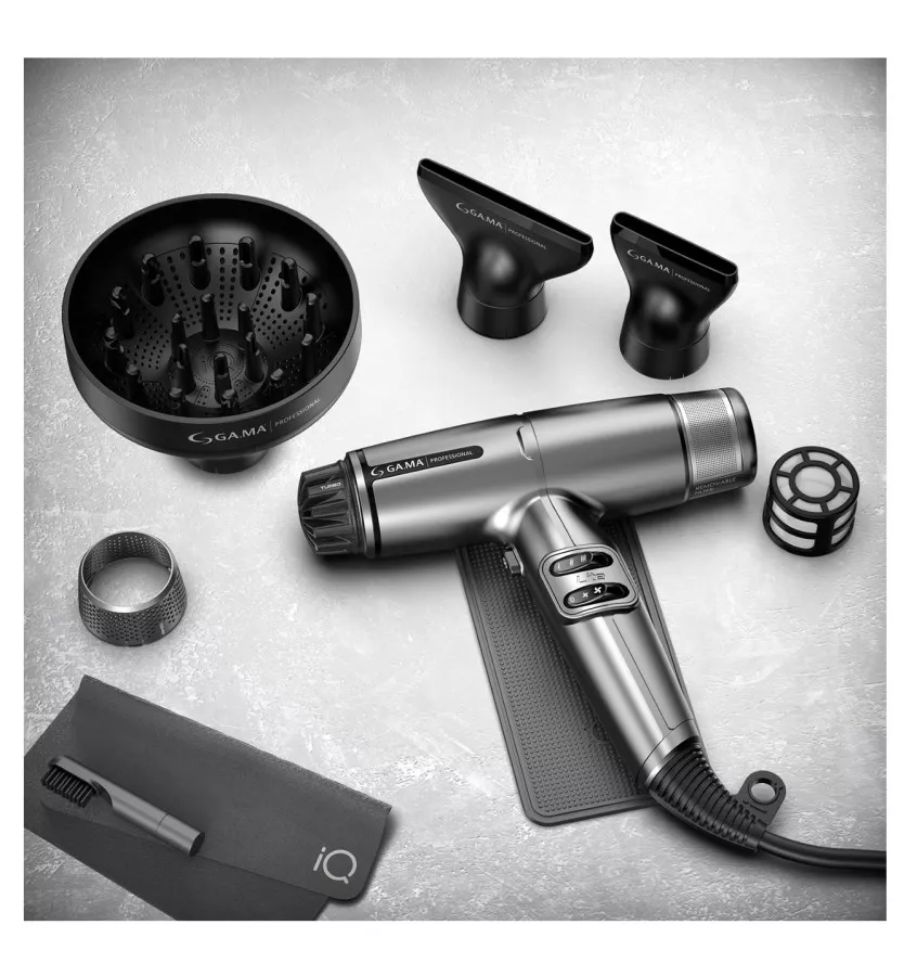 Odkryj niezwykłą lekkość i nowoczesność z suszarką do włosów GA.MA IQ Lite Max. Ta szara suszarka, ważąca jedynie 314 gramów, łączy w sobie nowoczesny design i zaawansowane technologie, oferując wyjątkową wydajność i komfort użytkowania. Dzięki mocy 1700 W i innowacyjnemu silnikowi bezszczotkowemu, osiągającemu prędkość 110 000 obr./min, suszenie włosów staje się szybkie i efektywne.