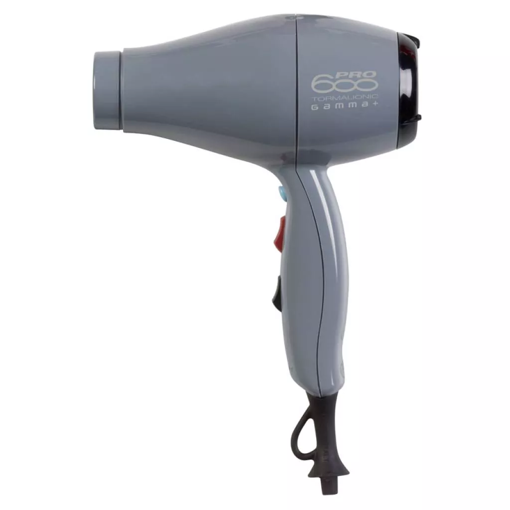 Suszarka do włosów Gamma Piu 600 PRO to rozwiązanie, które z pewnością spełni Twoje oczekiwania. Sprzęt ten wyposażono w nowoczesny, profesjonalny silnik Made in Italy. Suszarka jest kompaktowa. Długość to raptem 19cm. Mimo małych rozmiarów suszarka ma dużą moc i szybko suszy włosy. Suszarka zapewnia regulację temperatury i prędkości nawiewu. Do wyboru mamy dwie prędkości oraz 4 temperatury. Dodatkowo sprzęt został wyposażony w przycisk zimnego powietrza. W zestawie również koncentrator powietrza. Grill pokryty turmalinem podczas suszenia emituje jony ujemne, co przeciwdziała puszeniu się włosów i elektryzowaniu. Dzięki temu, że łuski włosów zostają domknięte, włosy są błyszczące i gładkie.