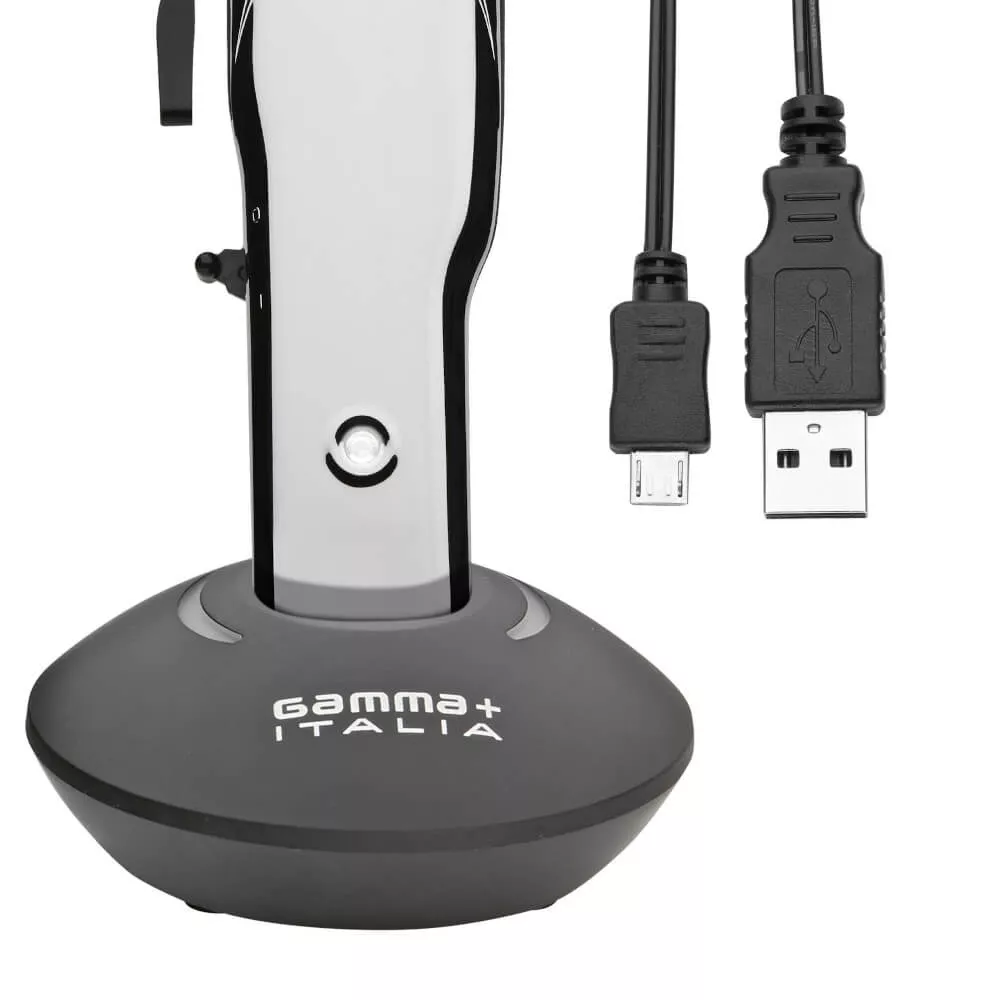 Bezprzewodowa maszynka do włosów Gamma Piu Absolute Alpha posiada wysokiej jakości silnik rotacyjny, który zapewnia równą pracę. Zastosowano tutaj ostrze Diamont Like Carbon DLC o szerokości 45mm. To gwarancja naprawdę gładkiego strzyżenia. Pozycję ostrza można regulować w zakresie od 0,8mm do 3,3mm. Możliwości strzyżenia zwiększają dołączone do urządzenia nasadki. Maszynka może być ładowana przez stację dokująca, ale też zwykły kabel bądź mini USB. Do maszynki dołączono dwie dodatkowo obudowy: w kolorze złota i w kolorze czerwonym. Maszynka posiada wydajny akumulator litowo-jonowy, bez efektu pamięci. Oznacza to, że nie ma konieczności rozładowania w całości sprzętu przed ponownym naładowaniem. To urządzenie łączy w sobie niesamowity, nowoczesny design i jakość pracy.