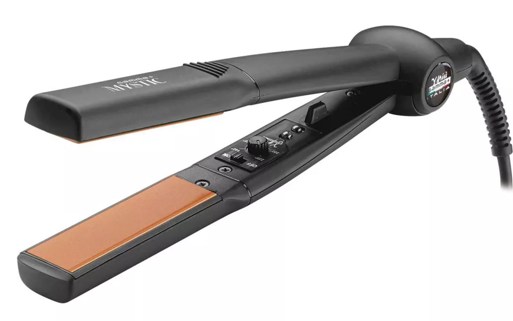 Profesjonalna prostownica do włosów Gamma Piu Mystic posiada płytki ceramiczne z turmalinem, które zamykają wilgoć we włosach i zapewniają efekt lśniących i gładkich pasm. Prostownica jest odpowiednia do zabiegów z użyciem olejków wygładzających i nabłyszczających. Prostownica posiada wbudowany system elektronicznej kontroli temperatury.