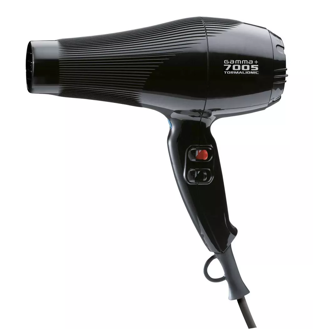 Suszarka Gamma Piu 7005 z jednej strony jest niezwykle wydajna, a z drugiej odznacza się ekskluzywnym designem. Na uwagę zasługuje wyjątkowa moc suszarki - 2500W. Wskazać trzeba też na maksymalną siłę wyrzutu powietrza i ciśnienie. Suszarka, dzięki zastosowanym technologiom, bardzo szybko suszy włosy. Z kolei dzięki pokryciu turmalinem sprzęt zapewnia jonizację powietrza - a to sprawia, że włosy pięknie lśnią. Dysza, co istotne, pozostaje zimna. Suszarka posiada przycisk zimnego powietrza.