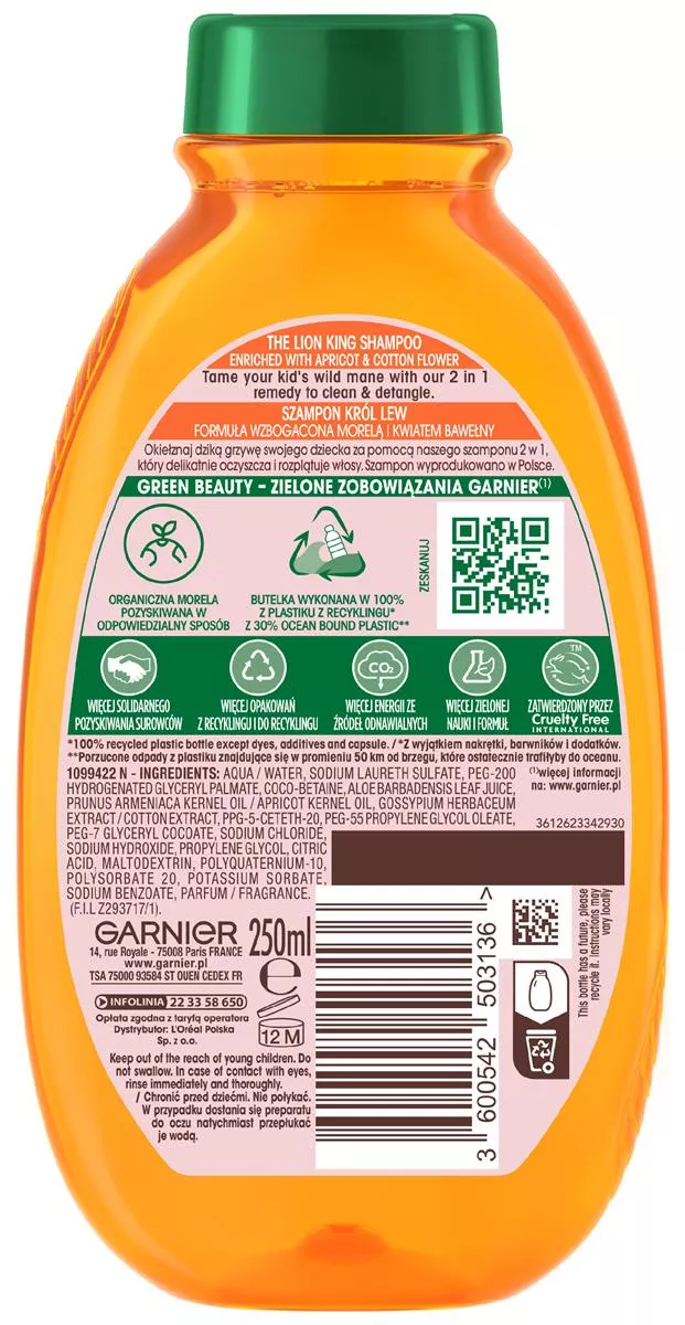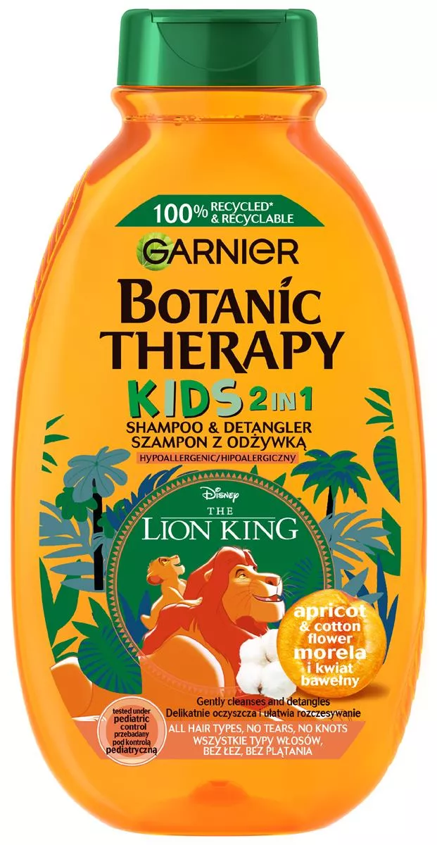 Odkryj, jak łatwo można okiełznać dziką grzywę Twojego dziecka dzięki Garnier Botanic Therapy Morela i Kwiat Bawełny szamponowi 2w1 dla dzieci Król Lew. Ten delikatny szampon z odżywką nie tylko skutecznie oczyszcza, ale także rozplątuje włosy, dzięki czemu codzienna pielęgnacja staje się przyjemnością. Produkt został przebadany pod kontrolą pediatryczną, co czyni go bezpiecznym wyborem dla delikatnej skóry i włosów dzieci.