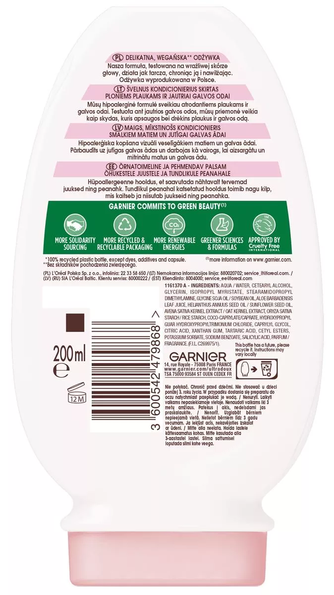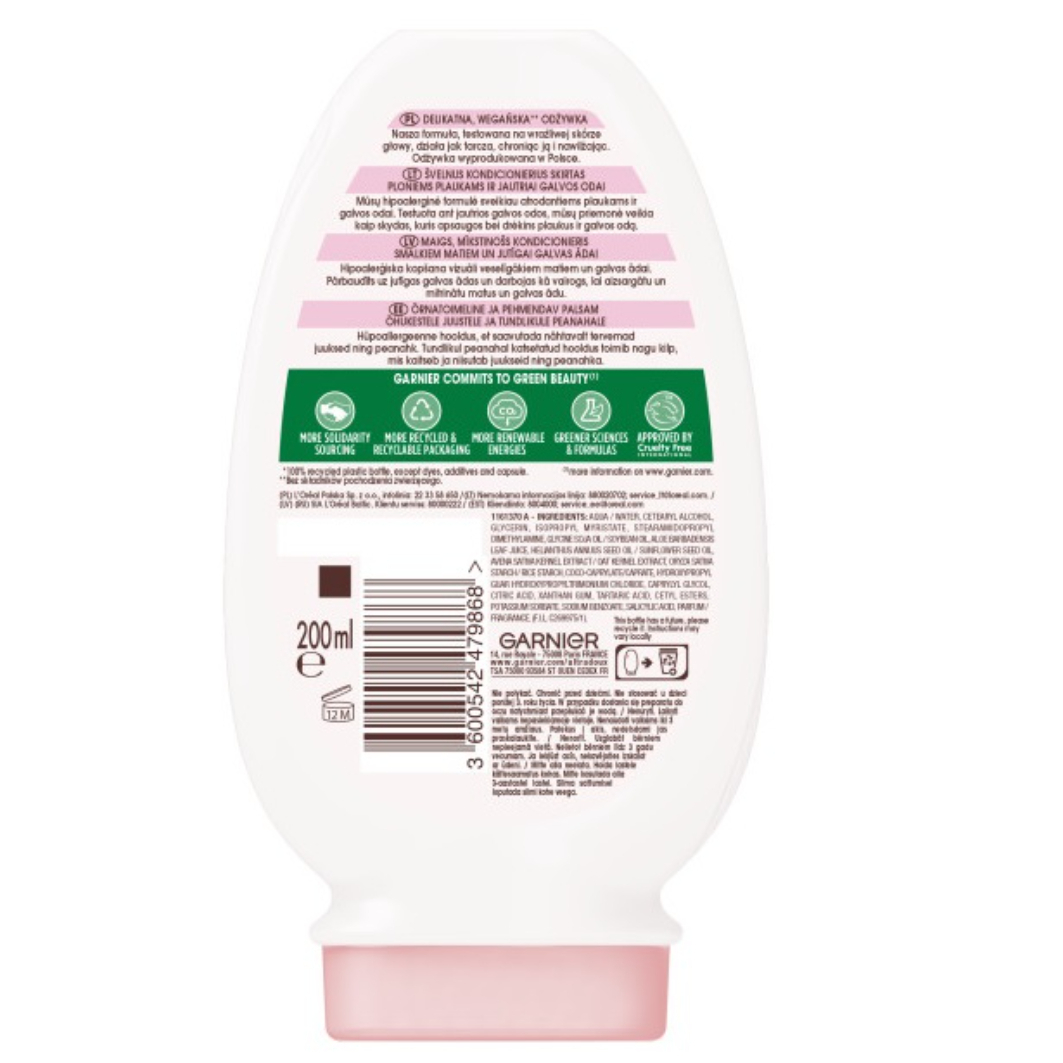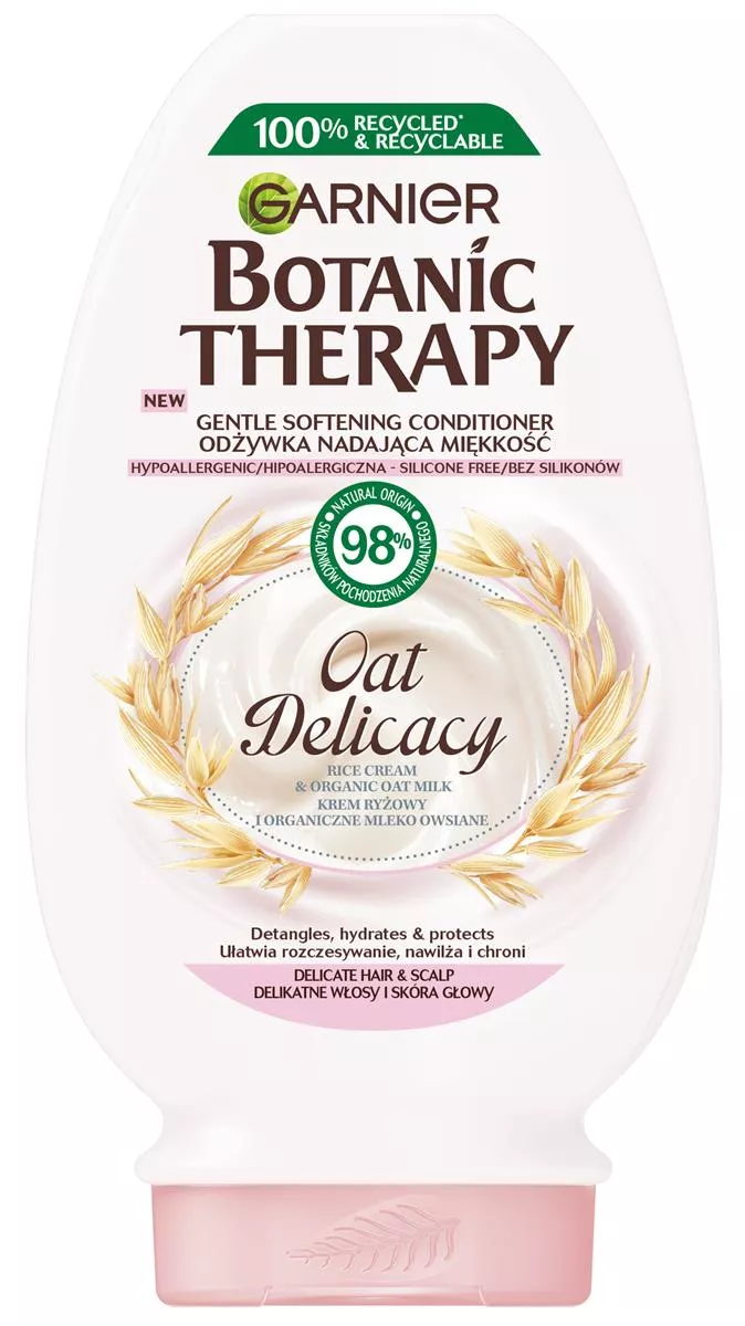 Garnier Botanic Therapy Oat Delicacy Odżywka 200ml to wyjątkowy produkt, stworzony z myślą o delikatnej pielęgnacji włosów i skóry głowy. Nasza hipoalergiczna formuła łączy w sobie krem ryżowy i organiczne mleko owsiane, zapewniając miękkość i nawilżenie. Odżywka została przetestowana na wrażliwej skórze głowy, działając jak tarcza ochronna, co skutkuje ukojeniem skóry głowy i zdrowo wyglądającymi włosami.