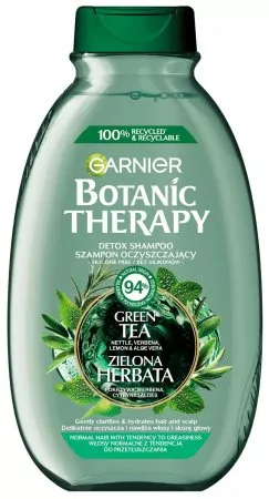 Garnier Botanic Therapy Zielona Herbata, Eukaliptus & Cytrus to wyjątkowy szampon oczyszczający i orzeźwiający stworzony z myślą o włosach normalnych z tendencją do przetłuszczania się. Dzięki unikalnej formule opartej na zielonej herbacie, eukaliptusie i cytrusach, zapewnia włosom zdrowy blask i długotrwałą świeżość. Lekka formuła nie tylko tonizuje, ale również dokładnie oczyszcza skórę głowy, dbając o naturalnie piękne i zdrowo wyglądające włosy.