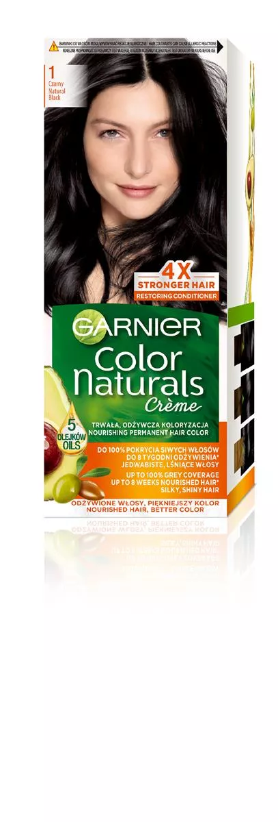 Garnier Color Naturals 1 Czarny to odżywcza farba do włosów, która zapewnia intensywny, długotrwały kolor oraz pełne pokrycie siwych włosów. Dzięki zaawansowanej formule z kompozycją trzech olejków, farba nie tylko koloryzuje, ale także odżywia i wygładza włókna włosów, nadając im jedwabistą miękkość i blask.