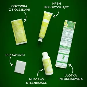 - Aby zakończyć koloryzację, nałóż na całą długość włosów pielęgnującą odżywkę z 3 olejkami. Pozostaw na kilka minut i spłucz. Twoje włosy będą pełne blasku, elastyczne i miękkie w dotyku.