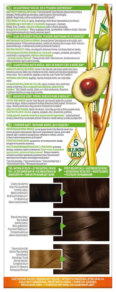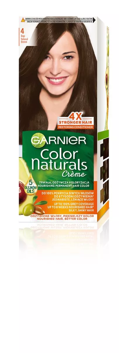 Garnier Color Naturals 4 Brąz, odżywcza farba do włosów, do 100% pokrycia siwych włosów