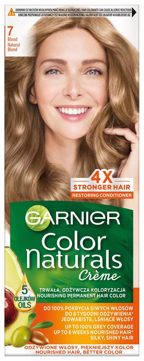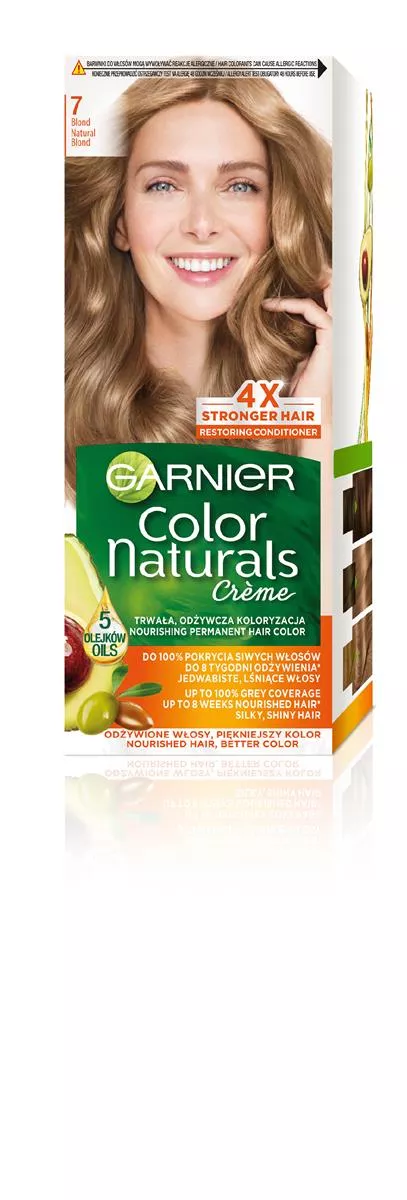 Garnier Color Naturals 7 Blond, odżywcza farba do włosów, do 100% pokrycia siwych włosów